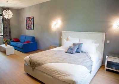 Nos chambres d’hôtes sont situées au premier étage de la bâtisse du Domaine. Elles offrent un accès direct à leur salle de bains privative avec douche à l’italienne et WC séparés. 3 de nos 4 chambres de charme sont des suites. De 35 à 40 m², elles comportent une vaste pièce agréable et ensoleillée, avec un canapé convertible. Nos chambres d’hôtes gardoises peuvent accueillir 2 personnes et jusqu’à 4 pour les suites. Les chambres se composent d’un lit King size à la literie très confortable. L’aménagement peut être ajusté selon vos souhaits, avec l’ajout d’un lit parapluie dans la chambre pour accueillir votre bébé.